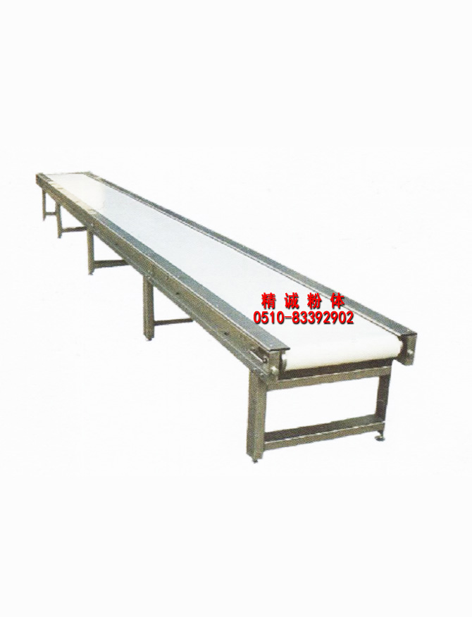 該機主要由機架、輸送帶、托輥、滾筒、張緊裝置、傳動裝置等組成。輸送帶根據摩擦傳動原理而運動,適用于輸送堆積密度小于1.67/噸/立方米,易于掏取的粉狀、粒狀、小塊狀的低磨琢性物料及袋裝物料,膠帶輸送機可在環境溫度-20℃至+40℃范圍內使用,被送物料溫度小于6 0℃。其機長及裝配形式可根據用戶要求確定,傳動可用電滾筒,也可用帶驅動架的驅動裝置。
